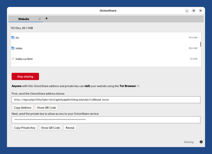 Avec le service Site Web de OnionShare :