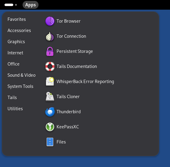 Tails verwendet als Arbeitsumgebung GNOME. Diese Seite beschreibt einige im Bezug auf Tails wichtige Funktionen der Arbeitsumgebung.