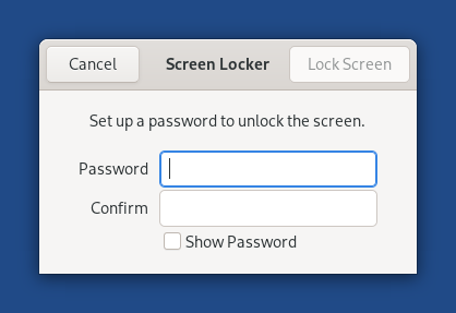 Falls Sie beim Starten von Tails ein Administrationspasswort einstellen, können Sie den Bildschirm mit Ihrem Administrationspasswort entsperren.