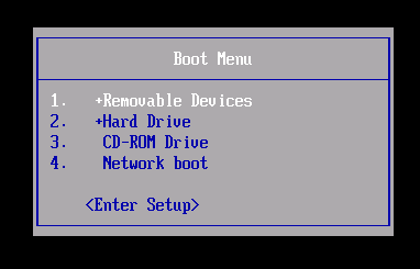 Das Boot-Menü ist eine Liste der möglichen Geräte, von denen aus gestartet werden kann. Der folgende Screenshot ist ein Beispiel für ein Boot-Menü: