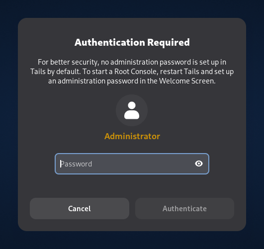 If in doubt, to verify that you are using Tails 7.4.1, choose Apps ▸ Tails ▸ About Tails.